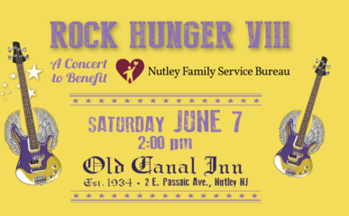 Rock Hunger Is Back! Nutley Family Service Bureau's live show Rock Hunger VIII at the Old Canal Inn returns on Saturday, June 7th, 2025 at 2:00pm - 6:30pm: Porch Rockers, The Sticky Wickets, Project Blue Book, and The Anna Felice Band. Proceeds benefits NFSB programs including the NFSB Food Pantry.