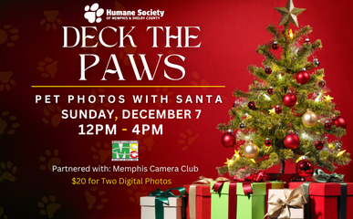 Are you in need of creative photos of your pet ahead of the holidays? Schedule your pet a time to take holiday photos with the Humane Society’s Santa Claus! Schedule a time slot and bring your pet in to sit on Santa's lap for treats and cuddles. Walk-ins are accepted.