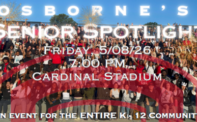 The Osborne Community - Cardinals Past, Present, & Future - will come together to celebrate our graduating seniors with a family style tailgate. Our seniors’ families will begin by gathering along the Cardinal Stadium track to share a meal, enjoy music, and reflect on the remarkable journey their students are completing. The Senior Spotlight will follow this time & will celebrate our seniors as they travel with their family down the 50 yard-line along an avenue of LED lights & spotlights. The evening will culminate in a professional firework show.