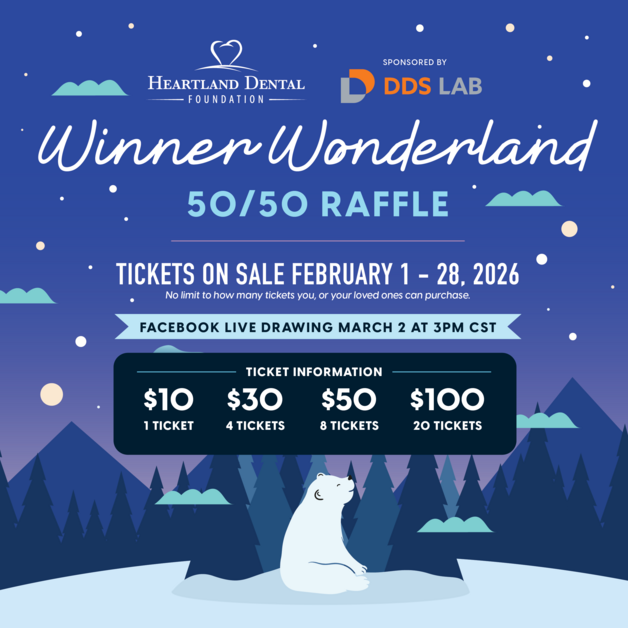The winner will receive 50% of the money raised through raffle ticket sales. The remaining 50% will support Heartland Dental Foundation!